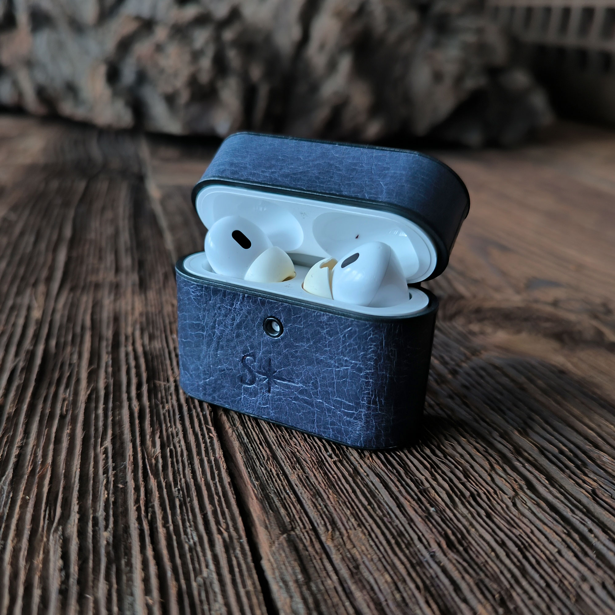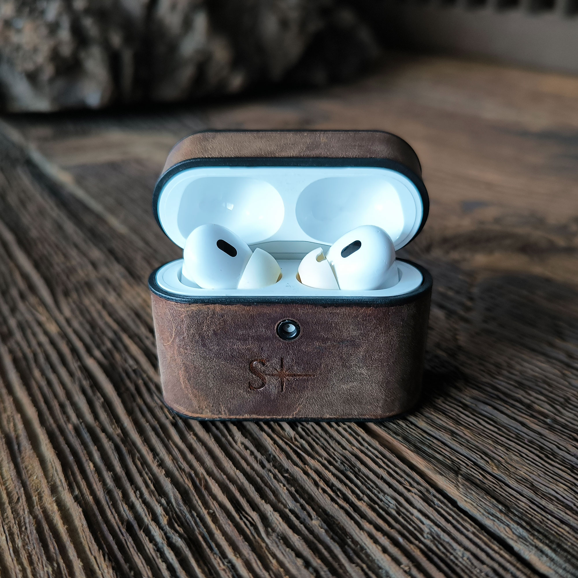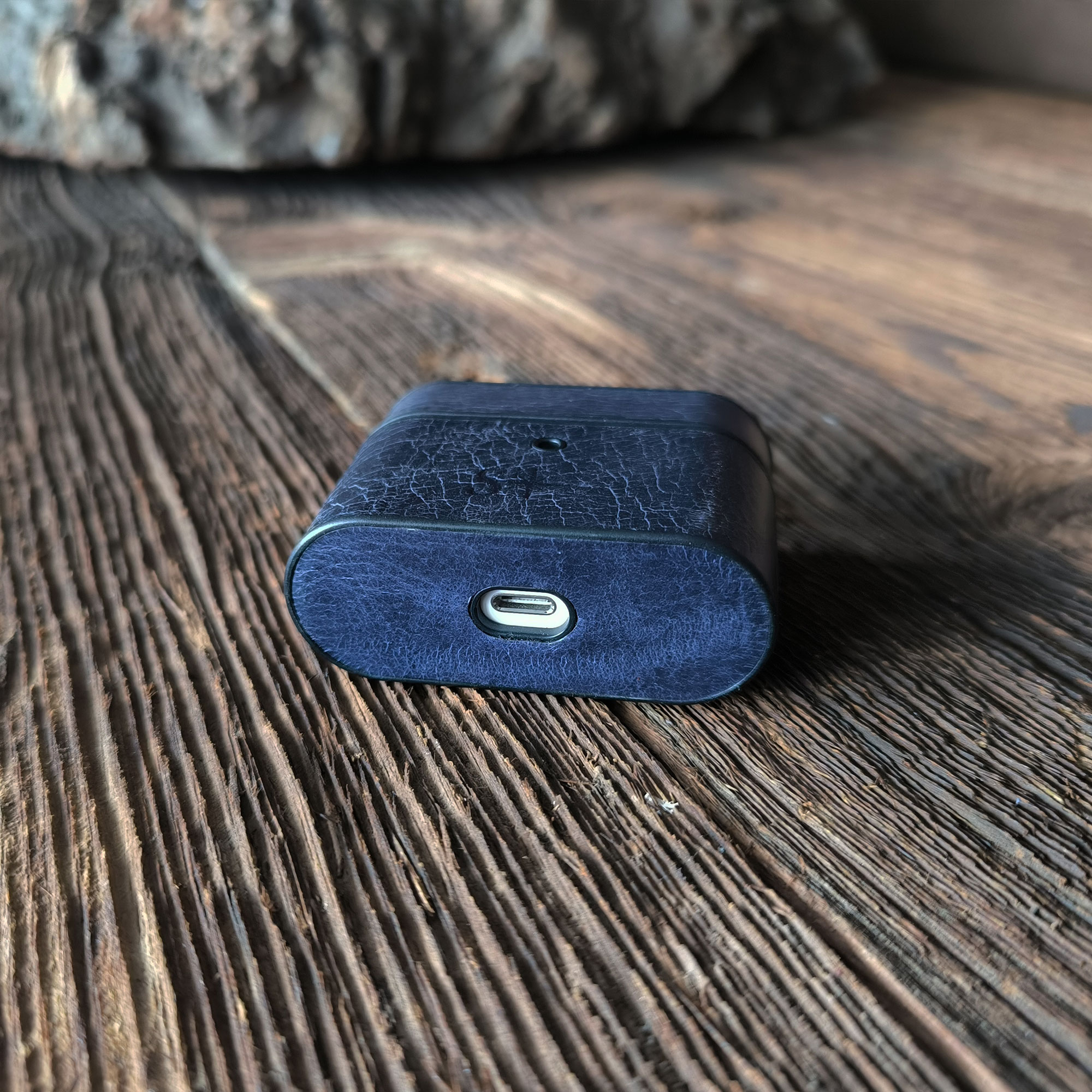 - Handcrafted Crazy Horse cowhide leather AirPods Pro case.