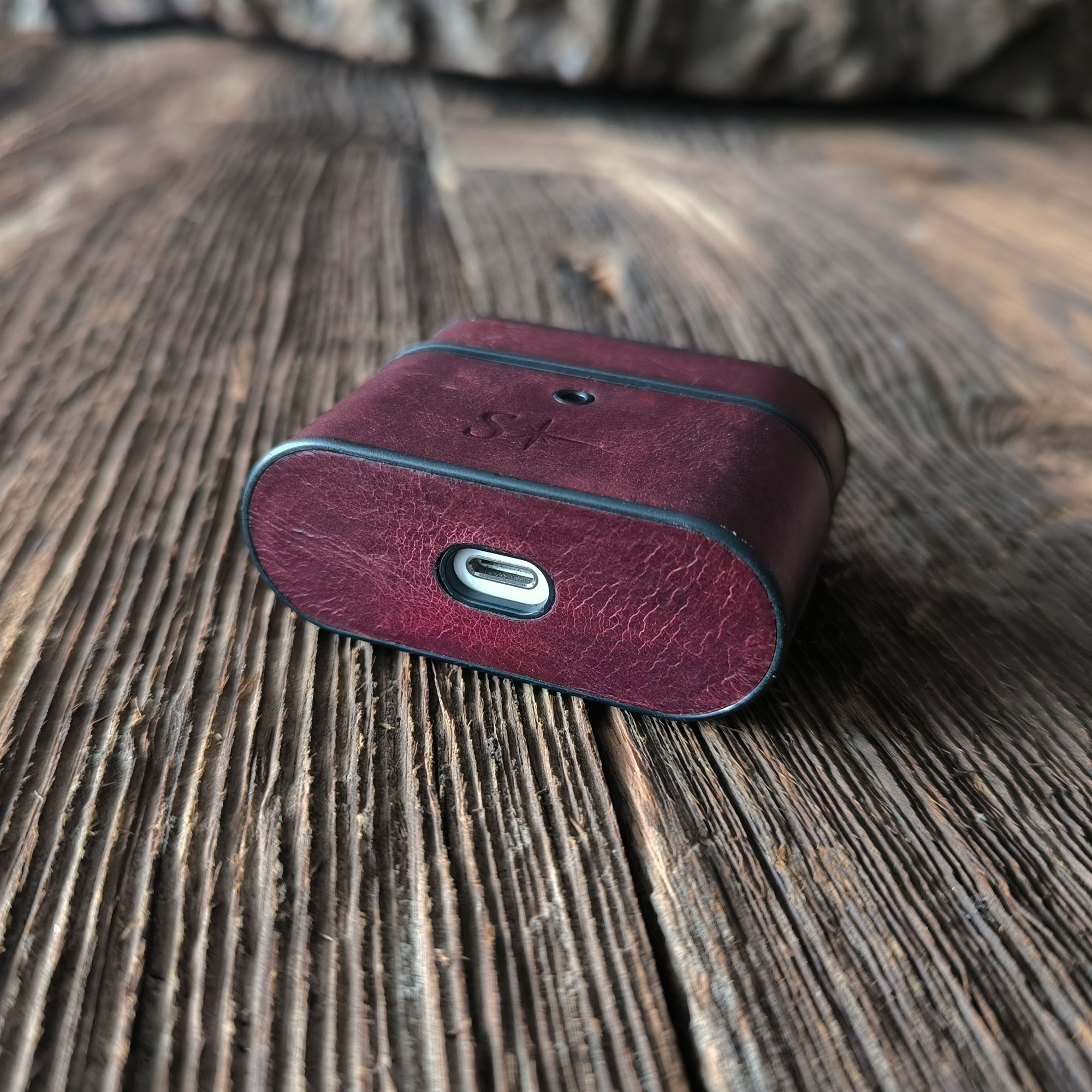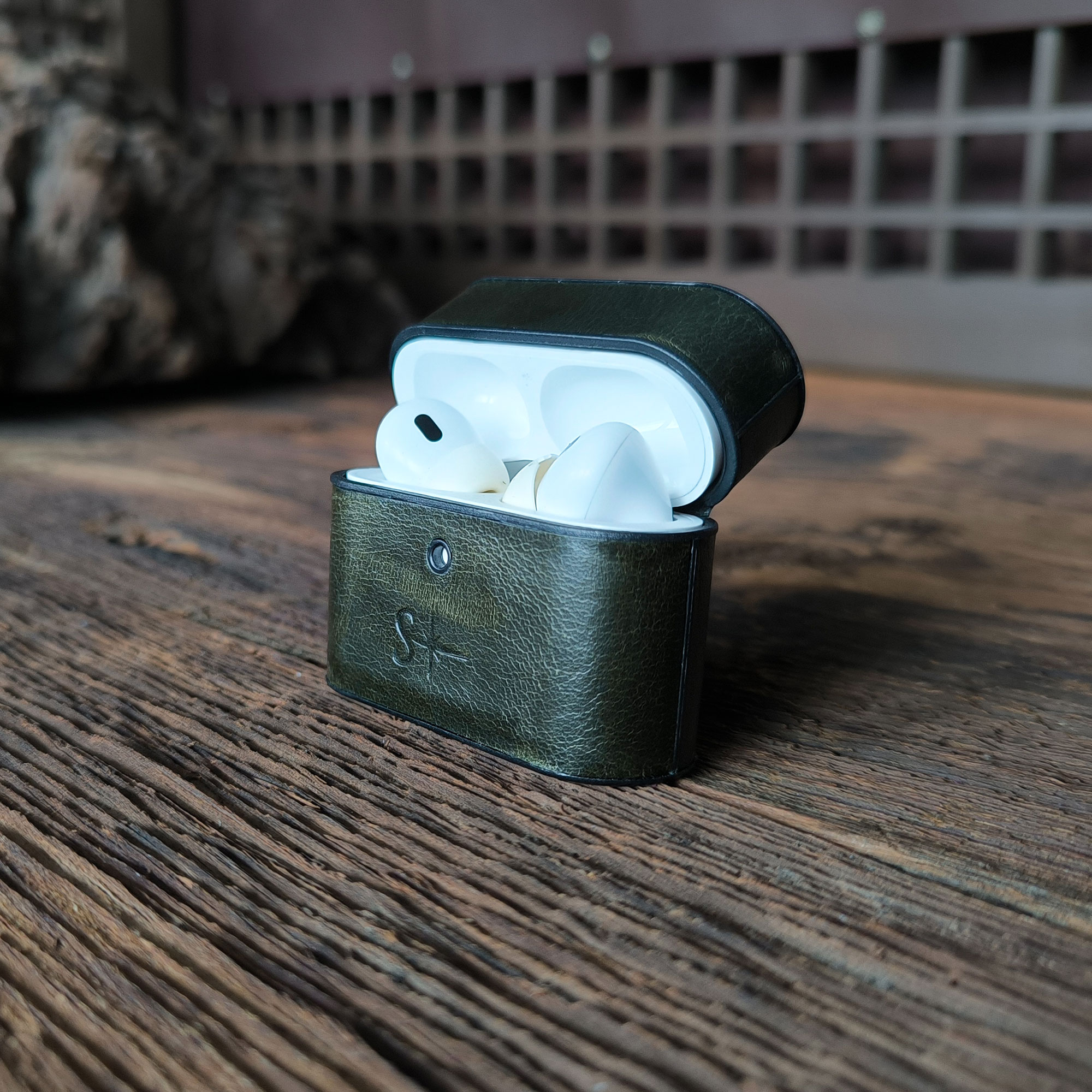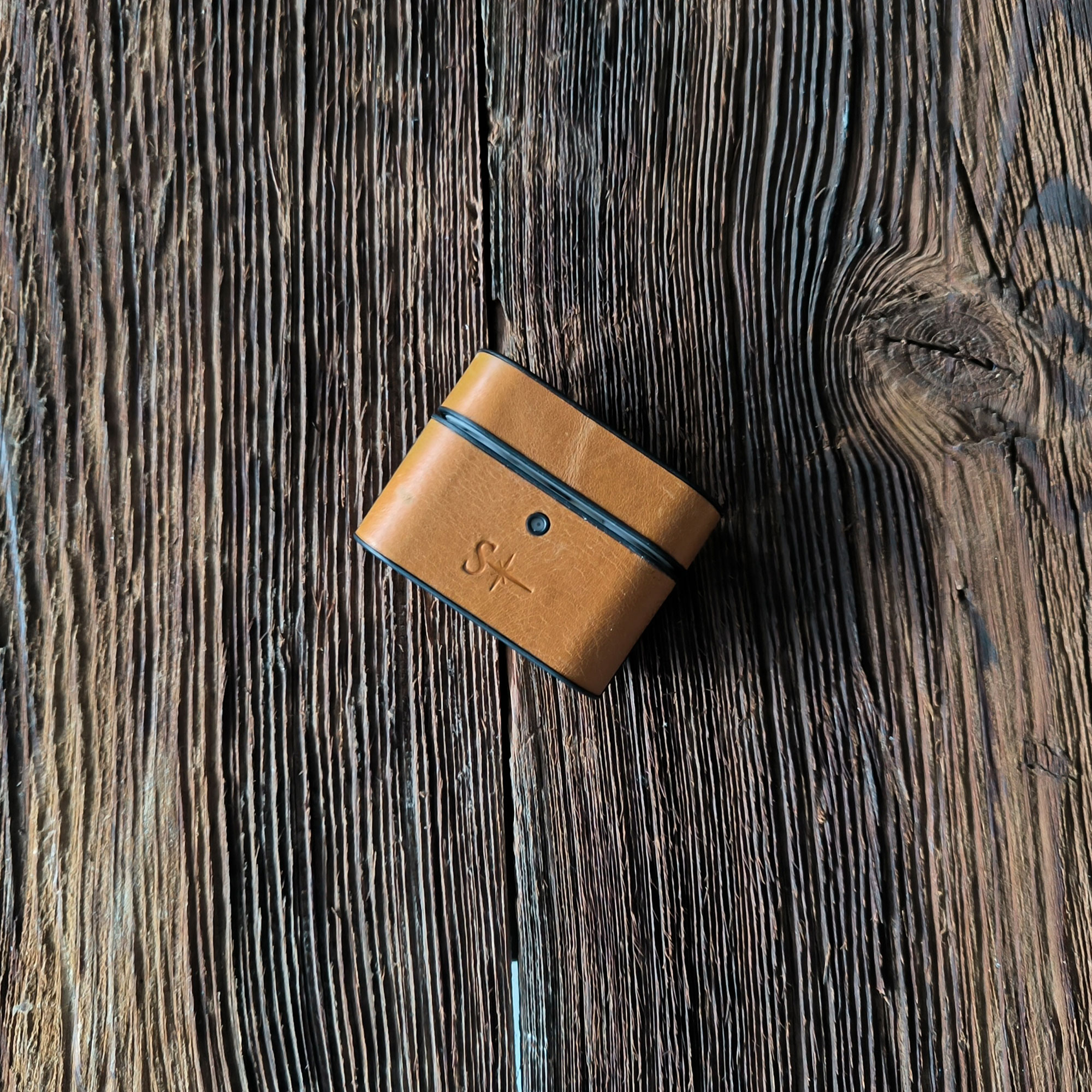 - Handcrafted Crazy Horse cowhide leather AirPods Pro case.
