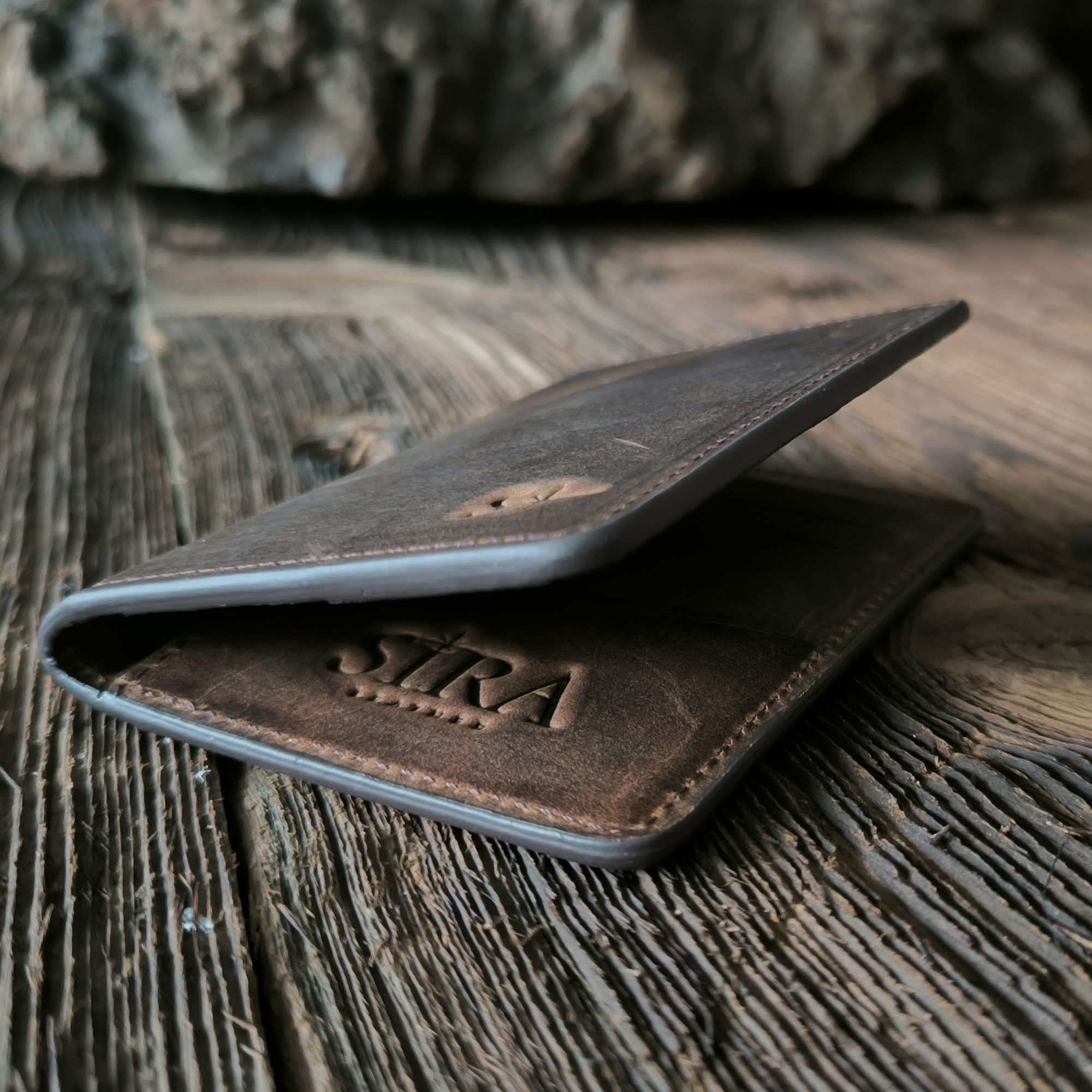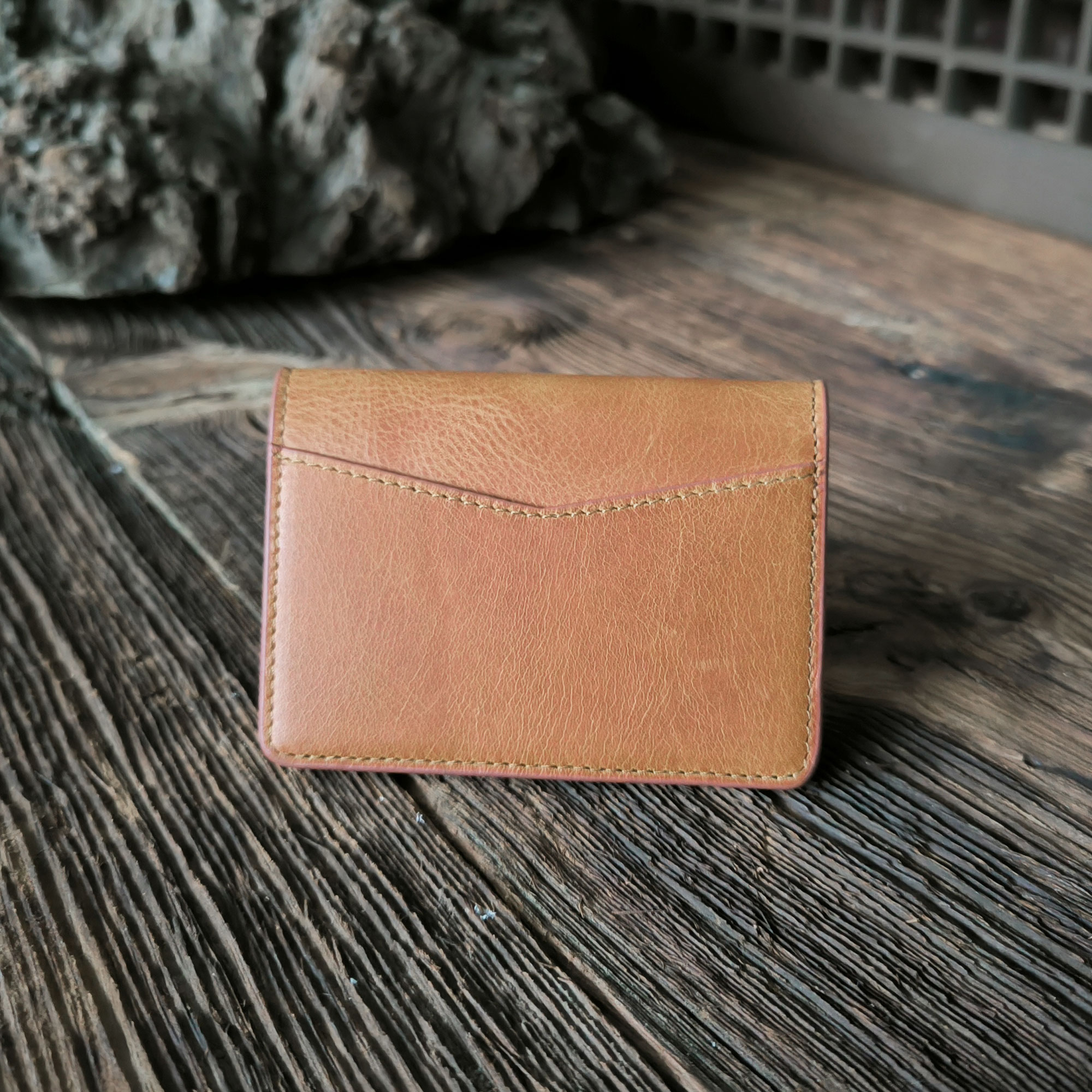 - Handcrafted Crazy Horse leather foldable mini cardholder.