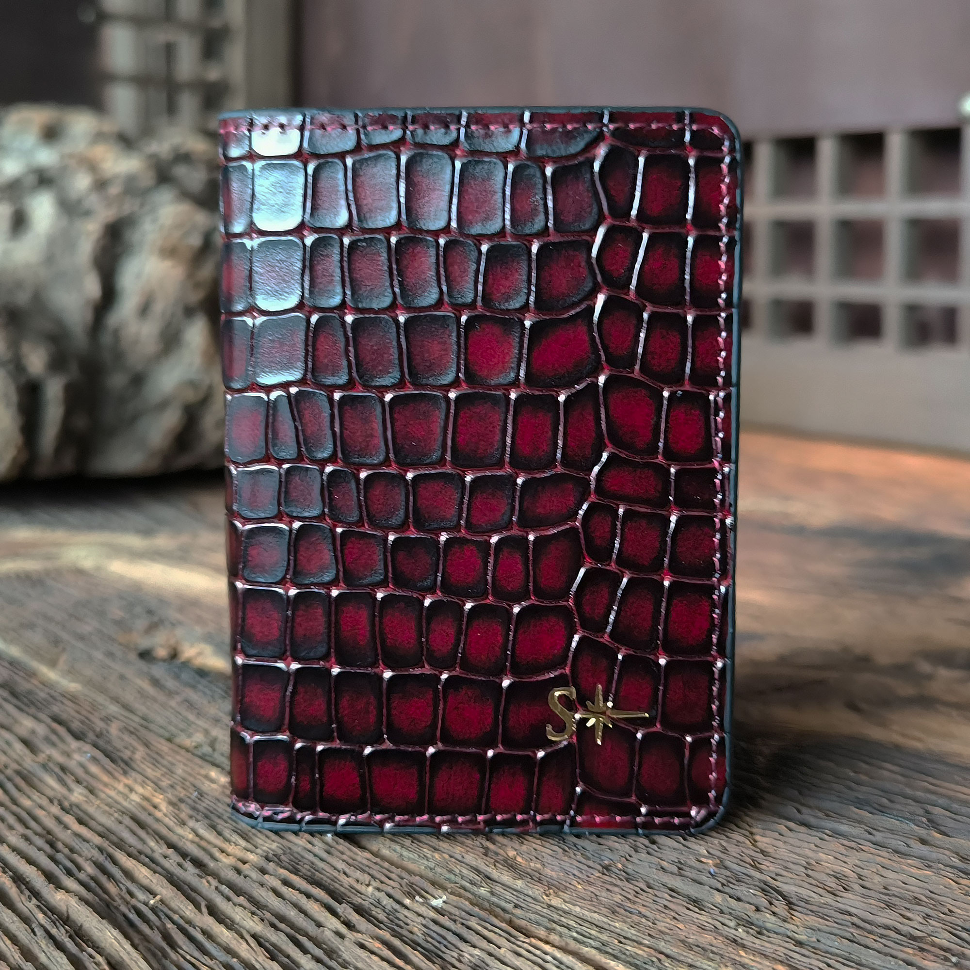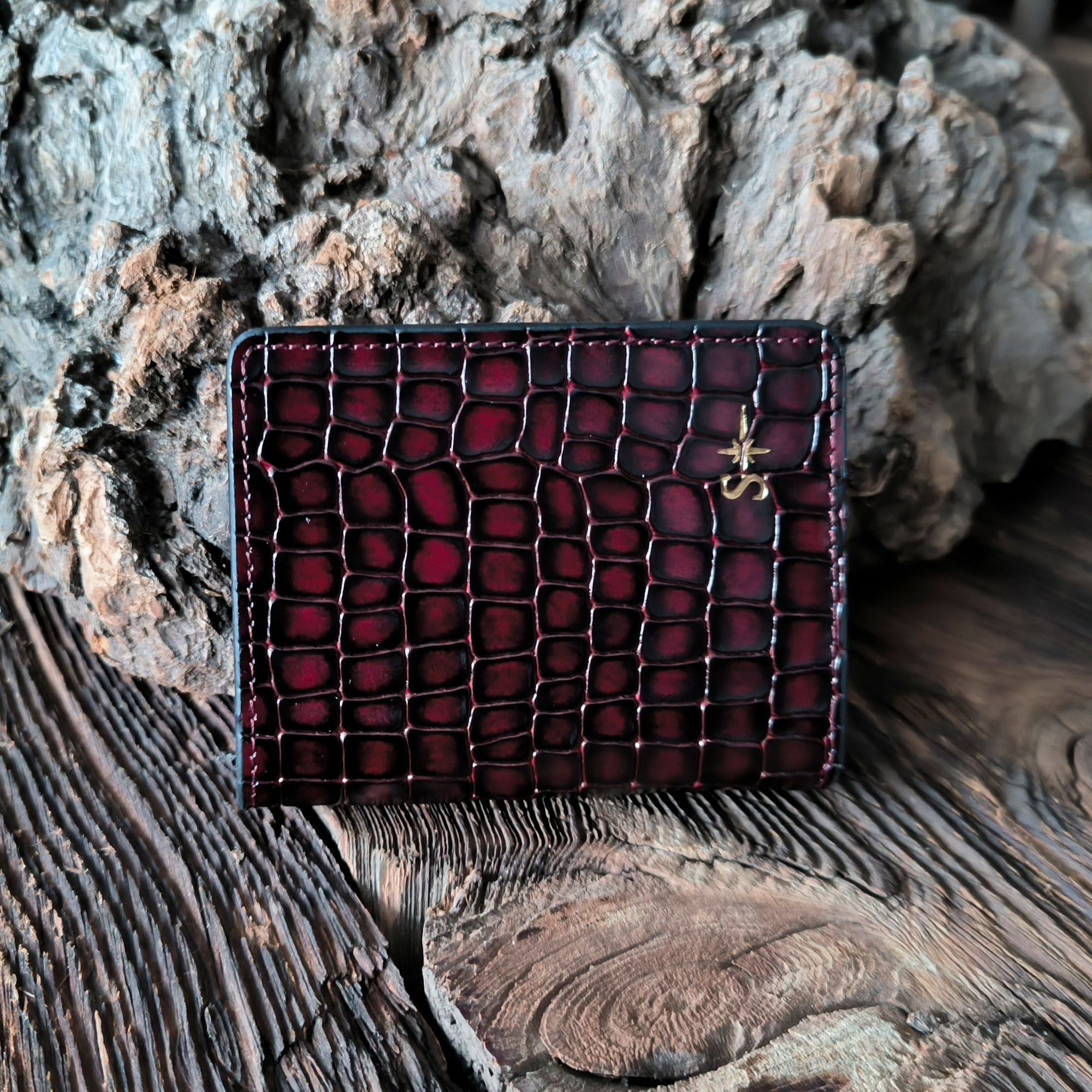 Handcrafted foldable mini cardholder made from Zippo Crocodile-embossed leather.