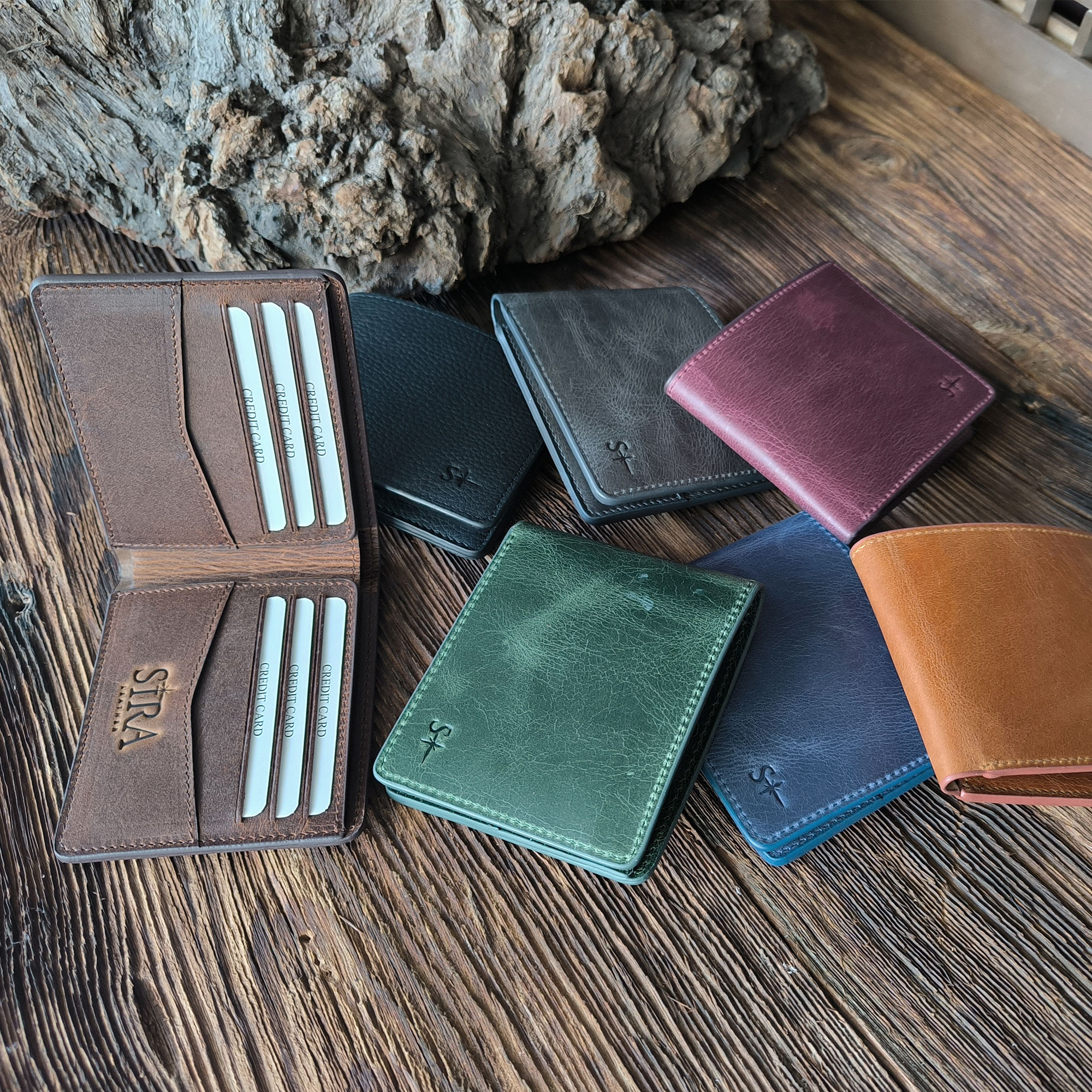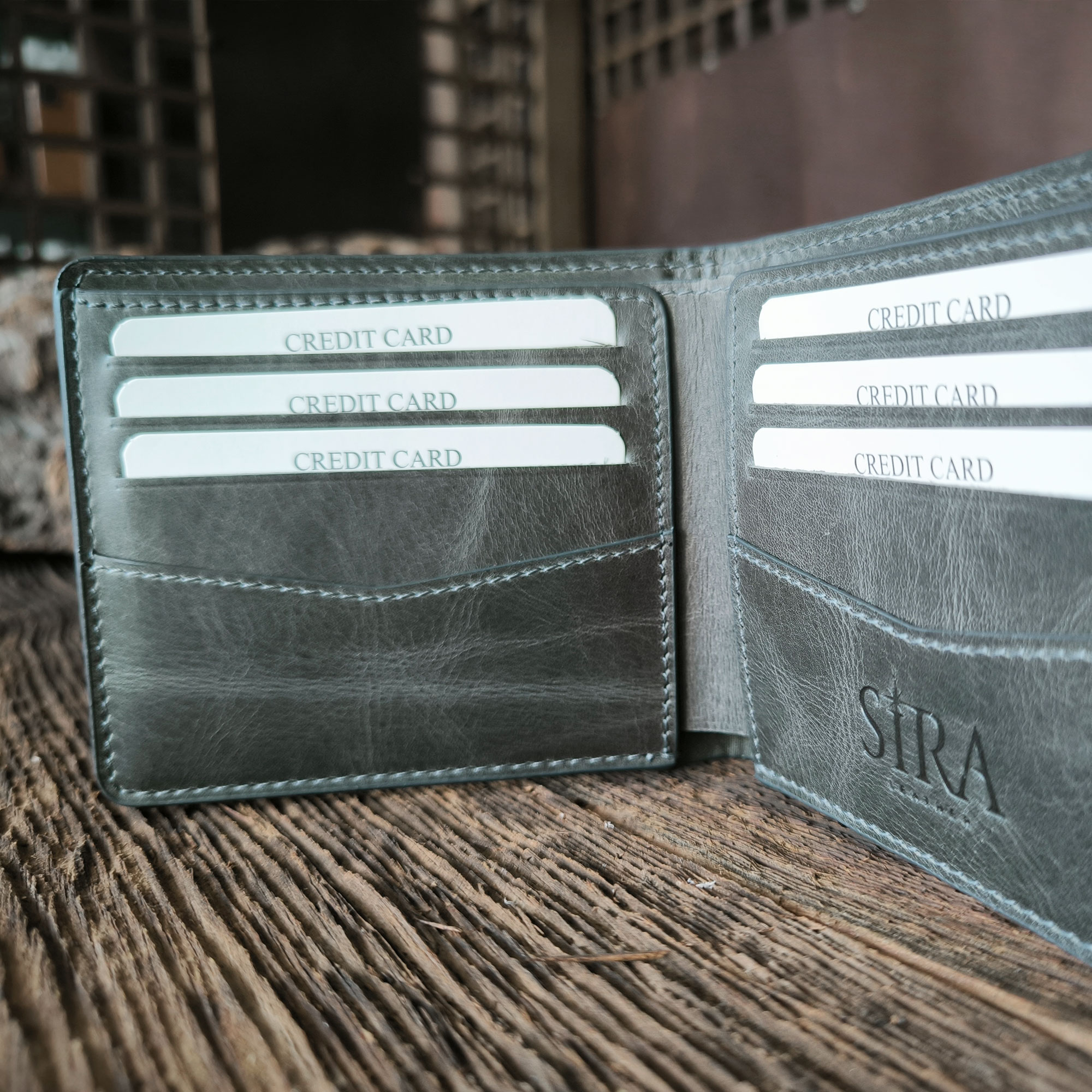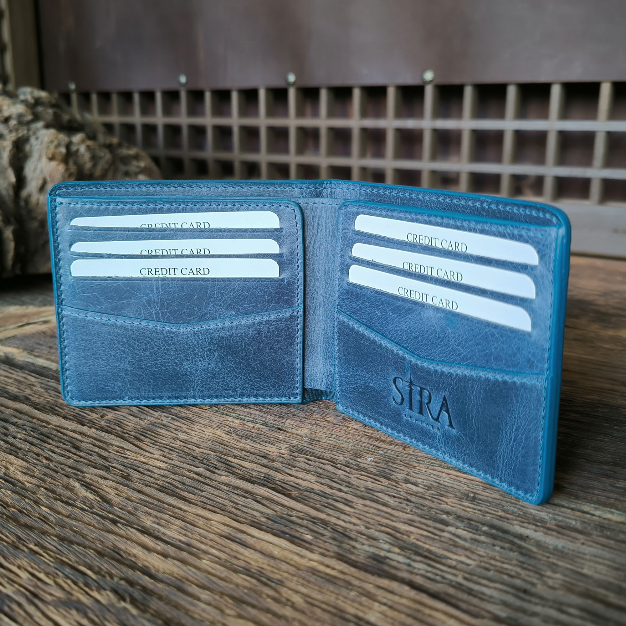- Handcrafted Crazy Horse leather wallet.