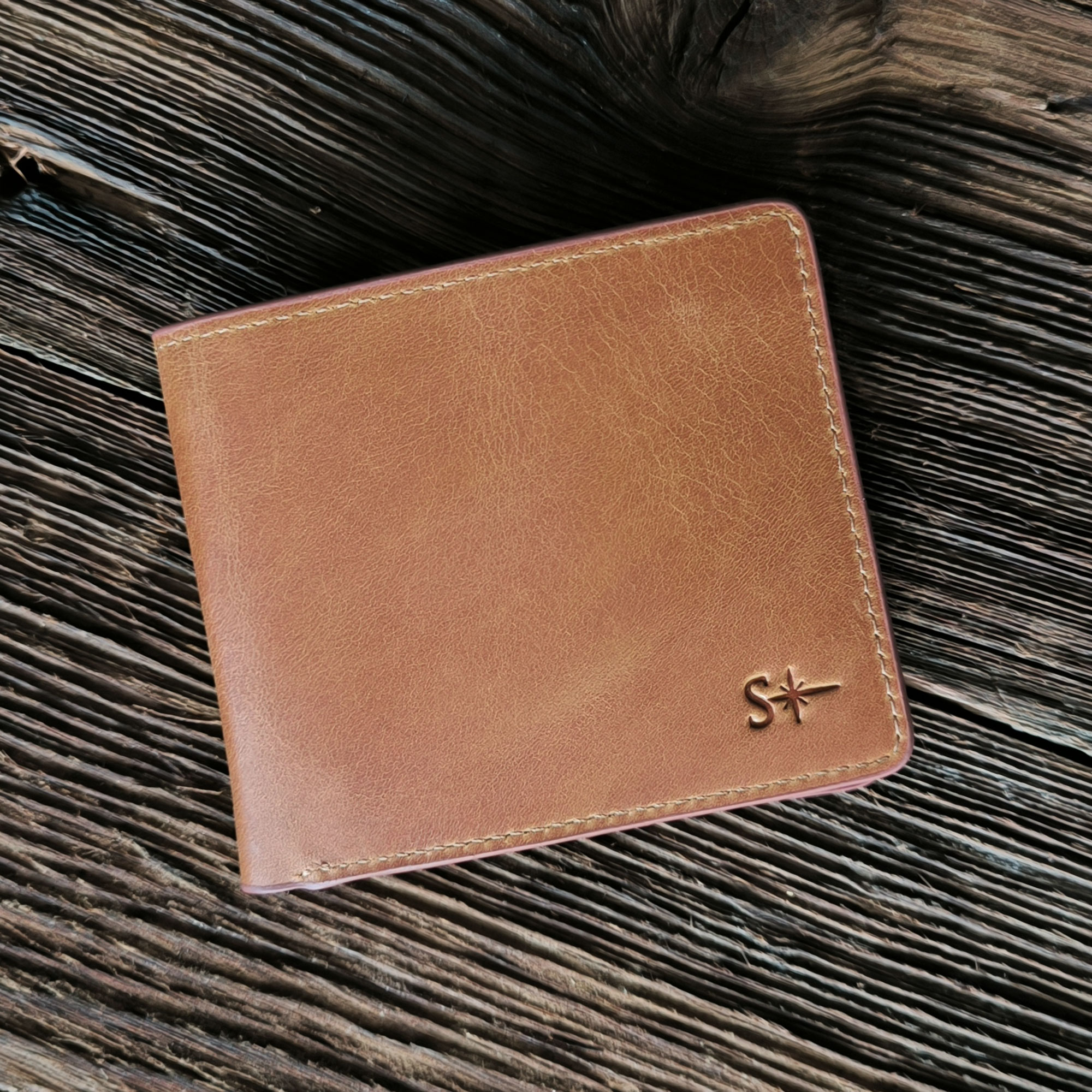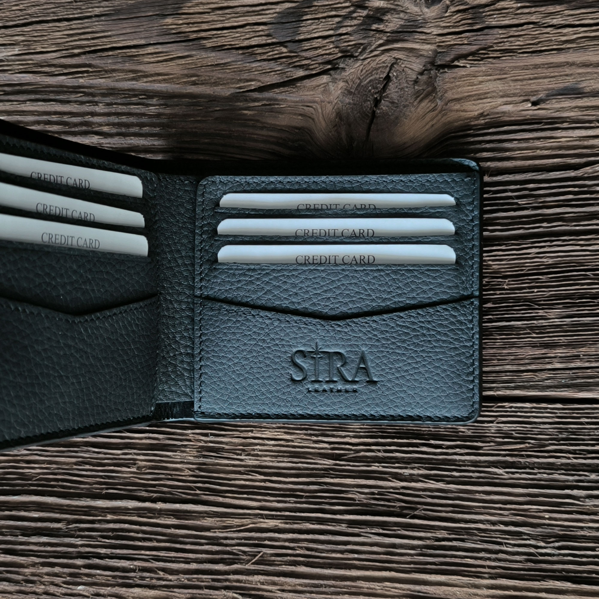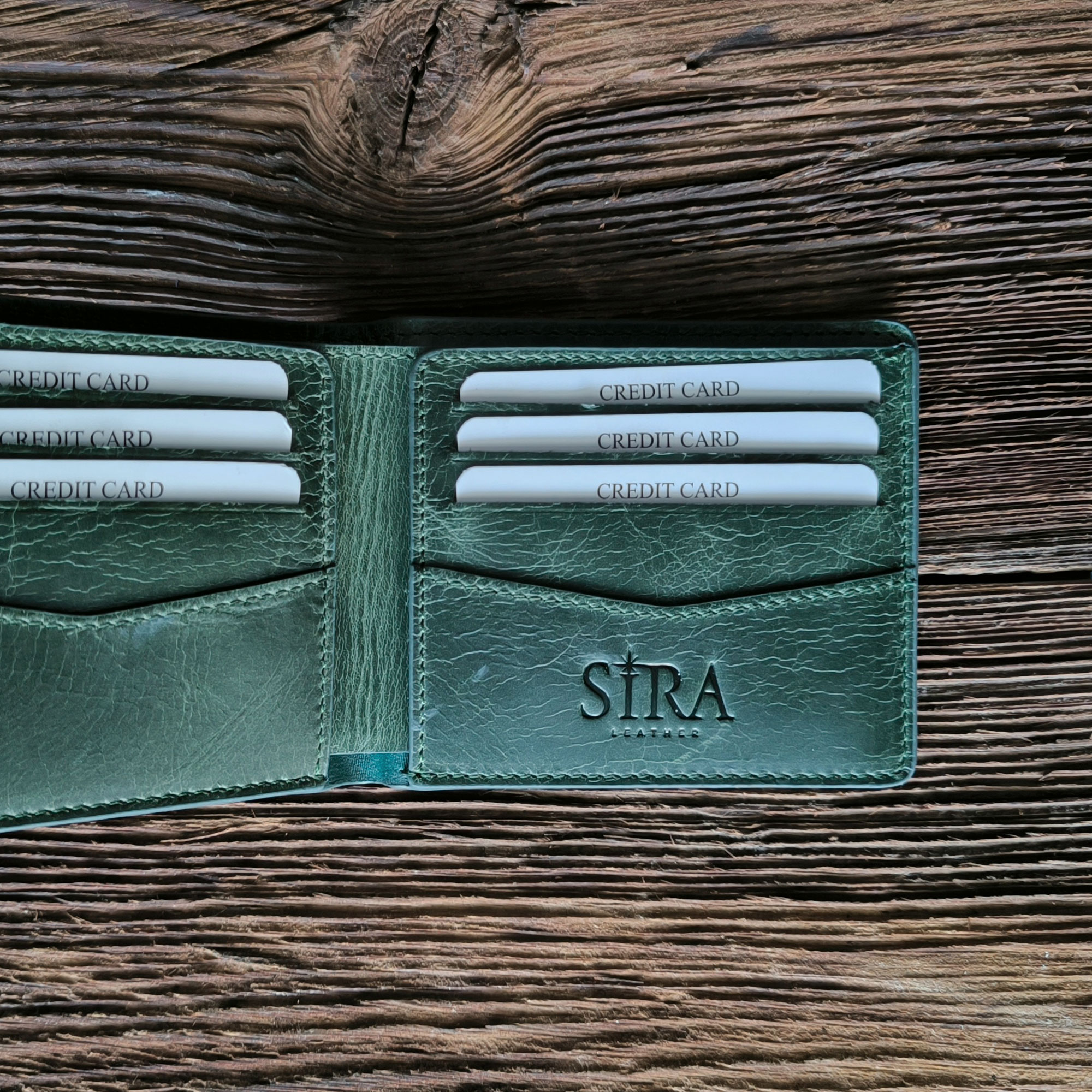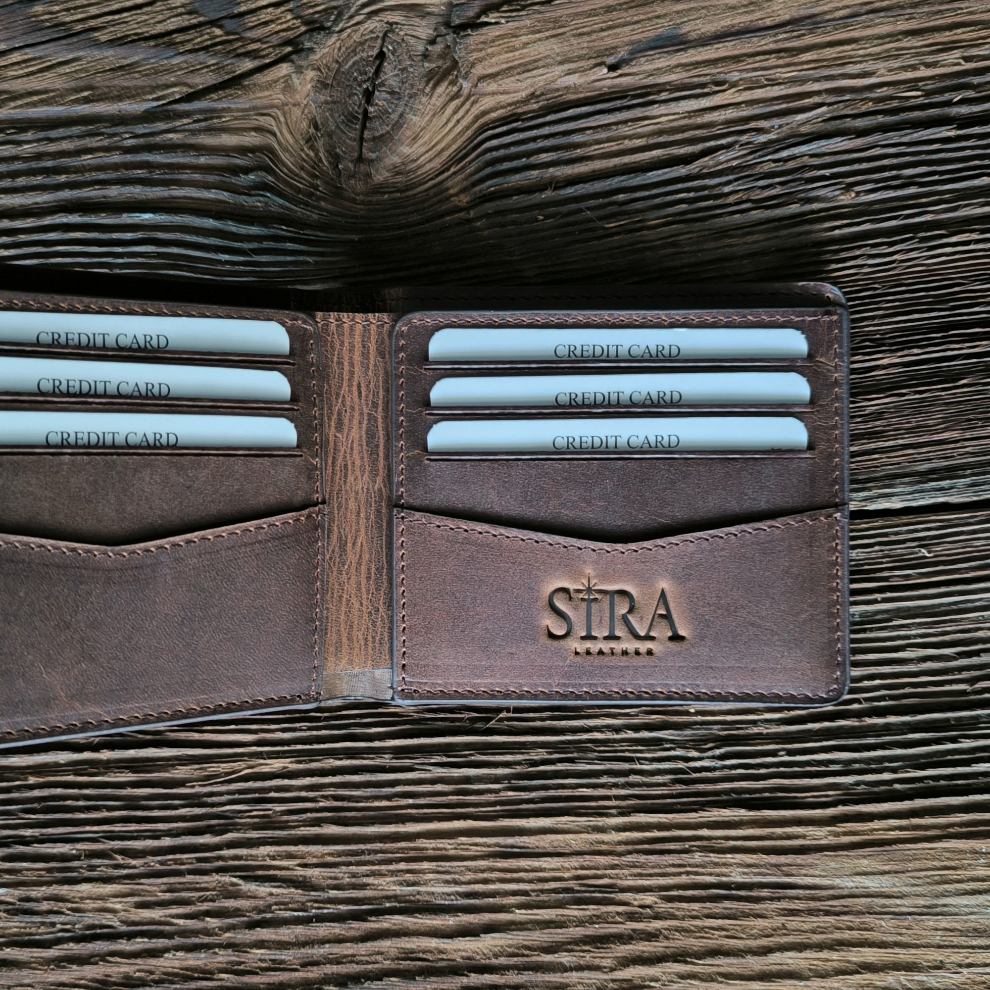 - Handcrafted Crazy Horse leather wallet.